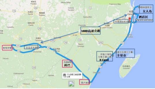 玛雅遗址科巴是八百年前由嫁到此地的Tikal(位于今天的危地马拉)公主带工匠、建筑师所建,风格和另一个玛雅遗址奇琴伊察完全不同。这里曾经居住4万人,共有6500座建筑,至今只有少数被发掘出来。