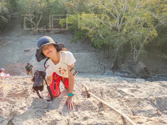 42米高的大金字塔Nohoch Mul(意即大土堆)。这个尤卡坦半岛上最高的玛雅建筑,是现在唯一一个还准许游客攀爬的金字塔
