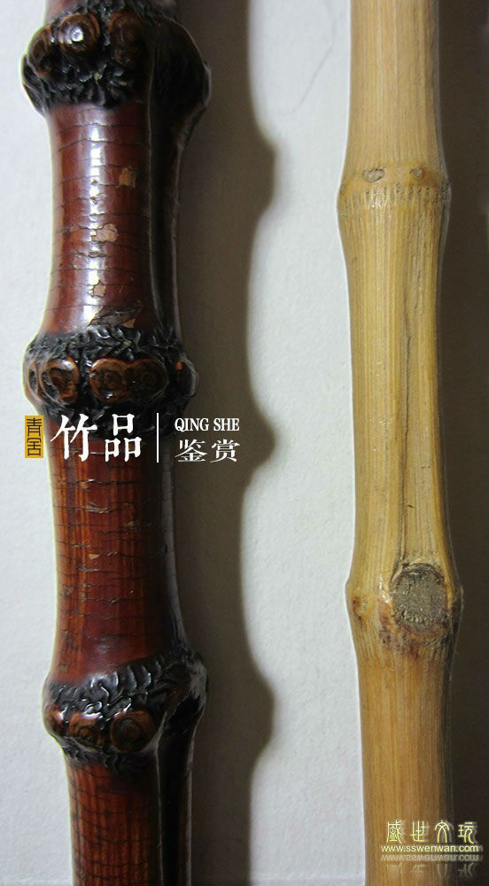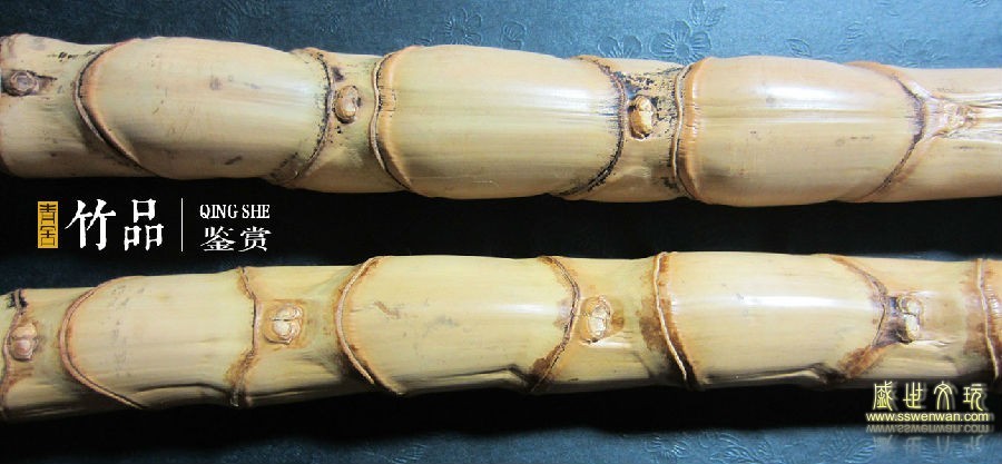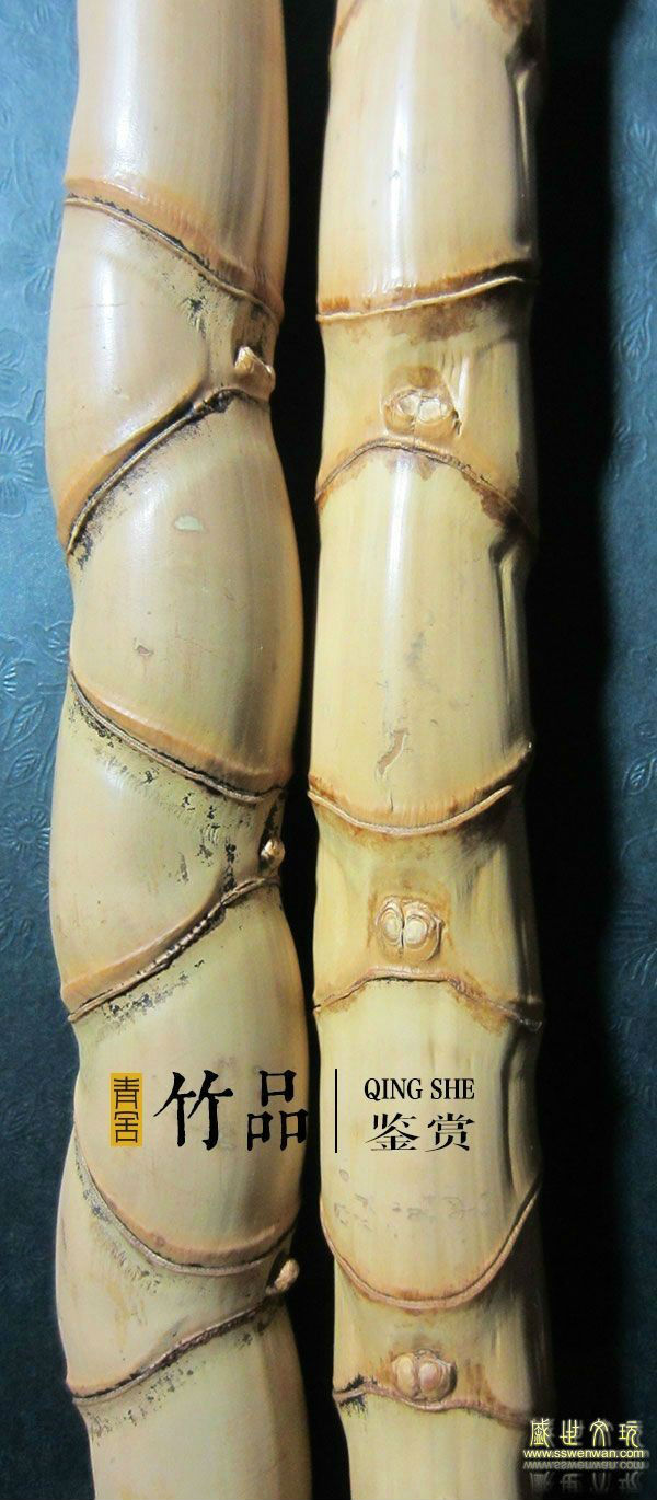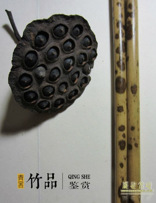 文献:[杖扇新录]载:"斑竹杖。质微黄而润。有红斑。大如钱。小亦如瓜子。相传为湘妃洒泪而成。故今称湘妃竹。书蕉载陸雾观云。拄杖以斑竹为上。竹欲老瘦而坚劲。斑欲微赤而奌疏。贾长江诗云。揀得林中最细枝。结根石上长身迟。莫嫌滴沥红斑少。怡是湘妃泪尽时。有友于新安市上。见有以斑竹杖求售者。长六尺余。根粗如杯。因其根结之势。刻成八仙状。须眉毕现。工极精巧。色红润。而光可以鉴。数百年物也。索金三十两。不知后归何人。余惟见有劈斑竹织成簾者。即取其斑湊成花鳥之文。共三桁。索价百金。亦未见有售(出)之者。"http://mmbiz.qpic.cn/mmbiz/49qbdmE4QozqGnfcZ9VdElzicp5pQcRcwweAR52zx4Z1OibfRCibDYwmZI2JLnlvEVs9vWibGjFlia0StEghNESRF1A/0