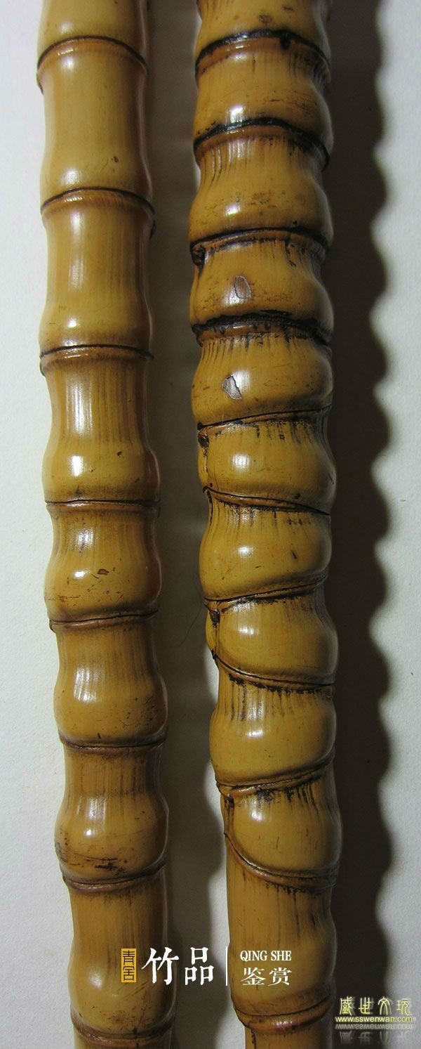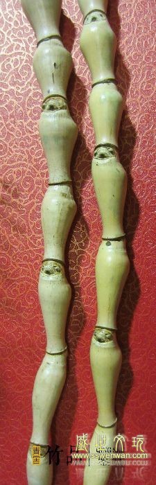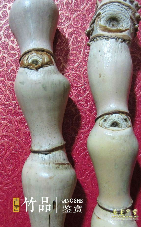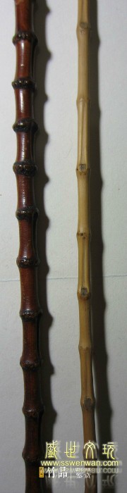 竹根之分岔,细小者。有弾性,如小指粗。可做马鞭、撢把、烟袋杆、笔杆等。节短而密,可观玩。