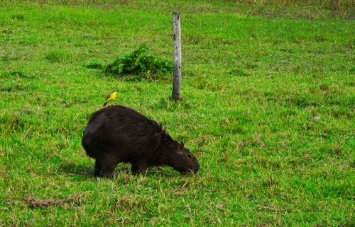 当地特有的大型鼠类动物叫Capybara,身材如同稍小一些的猪。