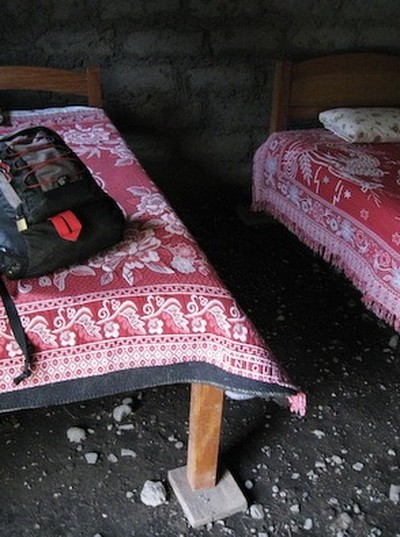 晚上住的地方,除一张床外什么也没有。有几个同行的朋友,是住在自己的帐篷里的。