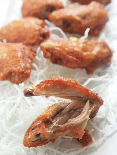 一说做鸡专题,朋友圈的好友铺天盖地地推荐各种快餐连锁店的炸鸡翅。如果,你也吃过这款海珊鸡中翅,对那些连锁店的初级选手就不会放在眼里了。优质的鸡中翅,在腌制的时候加入咸鲜出色的海珊酱,带着一丝类似鱼露的臭臭的味道,没关系啦,够鲜香够特别。薄薄的裹粉,高油温炸。出品丝毫不油腻,外皮脆,鸡翅肉咸香鲜嫩,撕开还有汁水渗出!一定要趁热吃啊!