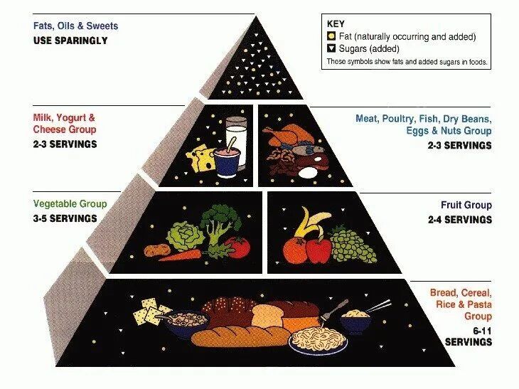 1992年的食物金字塔显示碳水化合物是这个金字塔的基础,它传递了一个信息就是似乎可以尽量吃碳水化合物!