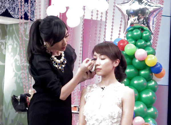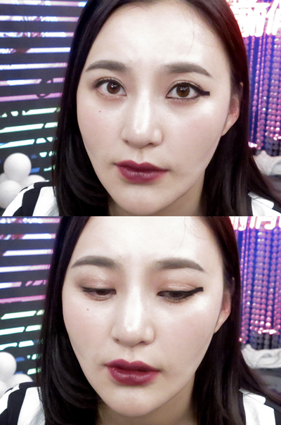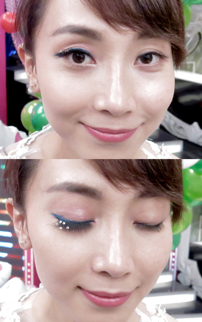 最后用金棕色眼影在下眼睑打亮,接着贴上有水钻的假睫毛,能在眨眼之间,产生水珠滴落于睫毛的错觉。瞬间变身冰雪公主,在派对中脱颖而出。