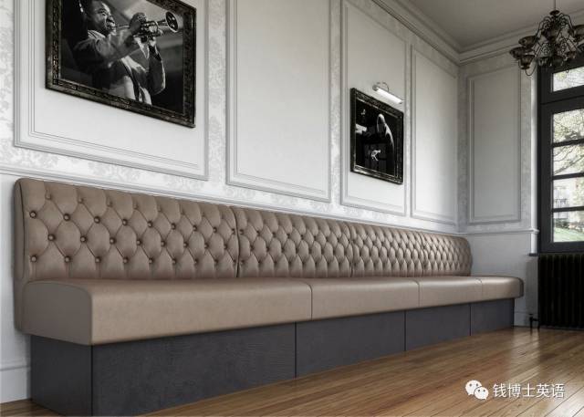 平时,这个平台还可以当成长凳,供士兵坐下来歇息。这个平台就是banquette,由banqu(=bank,长凳)加指小形式后缀-ette组成,现在常常用来表示贴墙的长凳或长沙发。