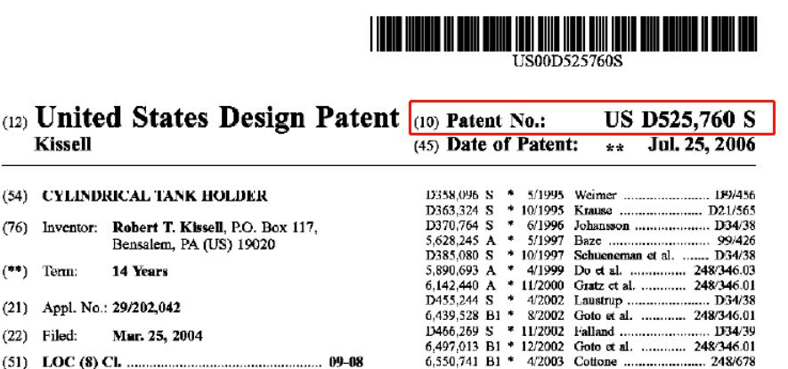 2000年12月31日前的编号方式是:表示设计专利的种类缩略词+专利公布序号美国至今对外观设计申请采取实质审查,规定一件外观设计专利申请只能有一项权利要求。