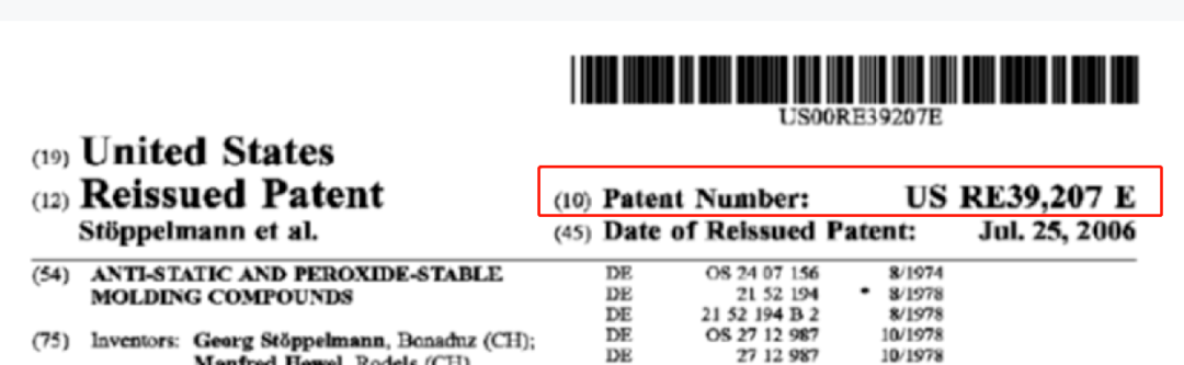 2000年12月31日前的编号方式是:表示再公告专利的种类缩略词+专利公布序号