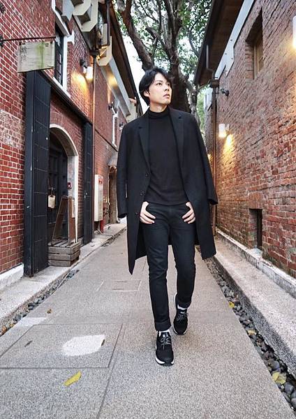 繭狀羊毛大衣、高領針織衫與窄管牛仔褲,和這雙HOGAN REBEL R261球鞋一致用黑色呈現,加上一點白色襪子的調劑,就是我最近喜愛的All in Black。