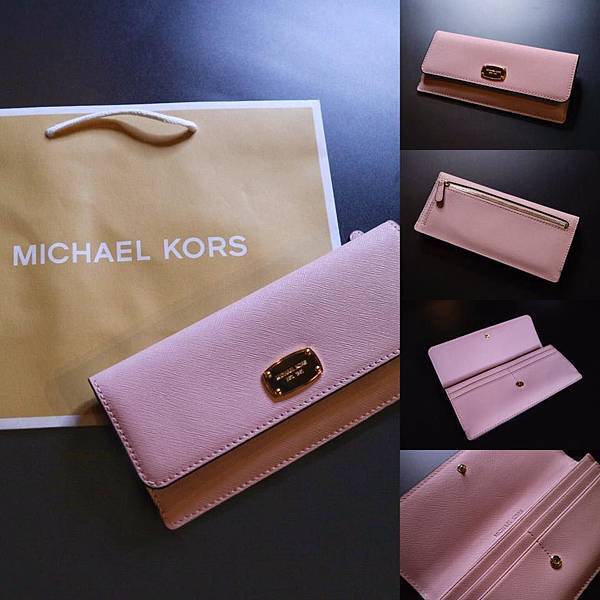 這樣就有機會得到超時尚的MICHELLE KORS Jet Set Travel 金色LOGO飾牌皮革釦式櫻花粉長夾(1名)🎁