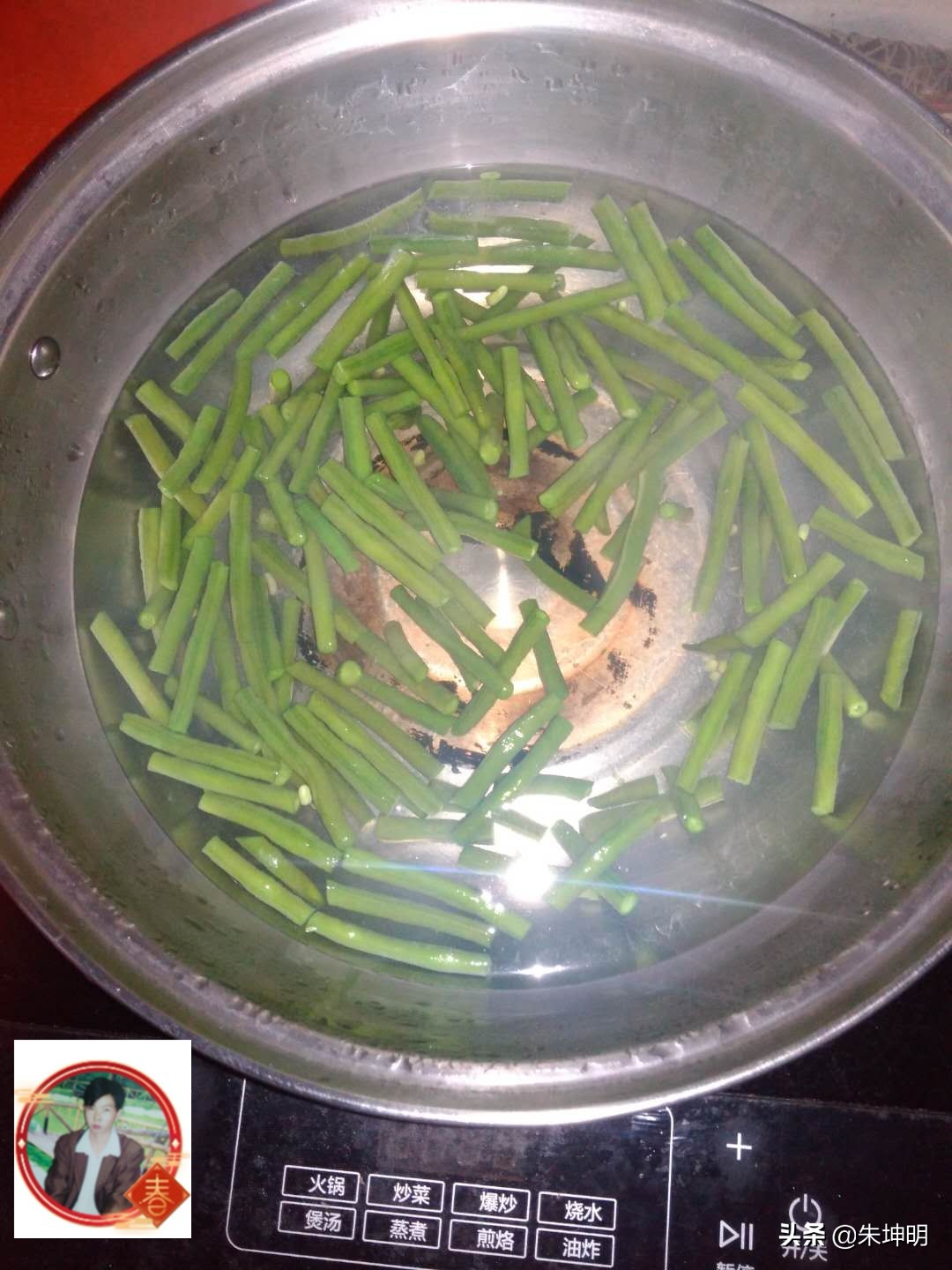 在家里我都是喜欢做很多凉拌豆角,吃到饱,在外面,用电磁炉做,不方便,所以解解馋就行了。豆角挺简单的,洗净切成3厘米左右,水烧开,煮个3分钟就行了,标准是表面的外皮可以用手搓掉,这都是母亲教我的办法。