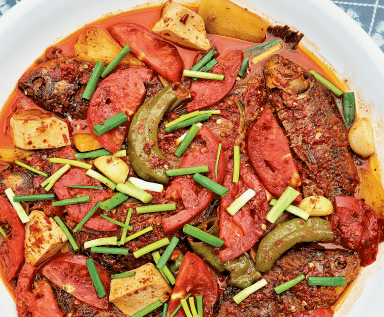 他们家的酸辣鱼、清汤鱼、番茄煮鱼很好吃,特别是番茄煮鱼,其实也属于大理酸辣鱼系列中的另外一种风格:大小不一的当地鲫鱼用油锅煎黄,放上木瓜、酸醋、辣椒、番茄、花椒、豆腐、洋芋、生姜、大蒜、白糖等小火炖煮,吃起来已经是骨酥肉香、酸辣过瘾,一个人可以吃好几条(当然最好提前预订,不然等待的时候有点长哦)。到了冬天,他们家还会做传统的洱海冻鱼,不进冰箱即可冻住的冻鱼,备受欢迎尝。