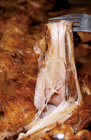 天龙烤羊王”独家秘笈的核心在于对食材的严苛讲究和对生态健康的专注。山庄食材均选自漾濞山间自然放养的山羊和乳猪,它们渴饮山泉水,饥食自然草,肉质天然鲜美,生态无公害。经过精心腌制、调味等众多工序后,挂入烤炉内烤制,在烤制过程中,还要层层上油直至皮呈金黄色,最后再加上精选的辣椒面、花椒、芝麻、香菜等秘料调配,一只完美的烤羊才算大功告成。