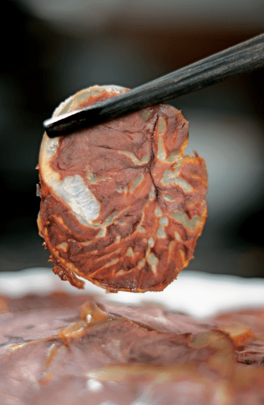 老窝火腿独特的炊烟熏香,肉质纯天然发酵分解出奶酪般的香味,肉质柔软,肥瘦相间,油脂润泽,口感肥而不腻,爽口醇香,肉丝鲜明呈桃红色。切开时肉丝透明似明子,清香味扑鼻,炖在土锅里,香味在院坝门外飘荡,沁人心脾,令人垂涎三尺。