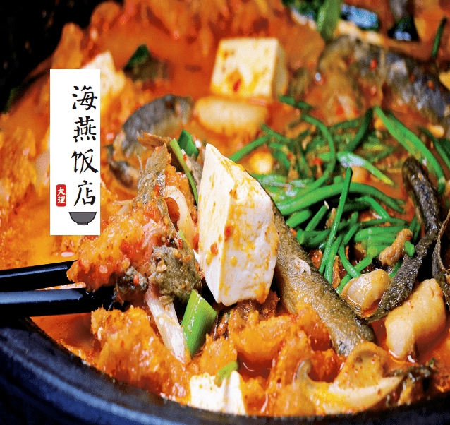 在海燕饭店众多白族传统美食中,砂锅泡皮泥鳅颇具传统特色。为保持传统口味,饭店不计成本坚持使用祥云土锅和中甸尼西砂锅,经传统工艺精心烹制,入口就能感受泥鳅肉的肥腴、滑嫩、甜香;顺着肋骨的纵缝,轻轻用舌尖一挑,慢慢咀嚼,会有浓重的鲜香味逐渐升腾起来,再配一小匙汤汁,咸鲜润泽,那滋味简直绝美。大理话说得好“家财万贯不如鱼汤泡饭”。本地食客,一定还会再点一份酸辣鱼,大理水质好,鱼肉鲜,酸辣鱼口感酸爽鲜甜,很有穿透力,每一口鱼肉都很入味;吃完鱼再来一大碗鱼汤泡饭,当胃开始撑胀的时候,你才真正感觉到:“到家了!”