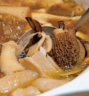 除了享用传统的野生菌火锅之外,这家餐厅在2017年还增加了松茸全席,开创了丽江松茸宴,20多道松茸菜品精致、漂亮,有档次、有味道、有营养;吃火锅的时候,还可以配上诸如金沙松茸、敲虾松茸、刺身松茸的特色菜,极润滑爽口,加入熬好的鸡汤、鸡肉,更加鲜美。