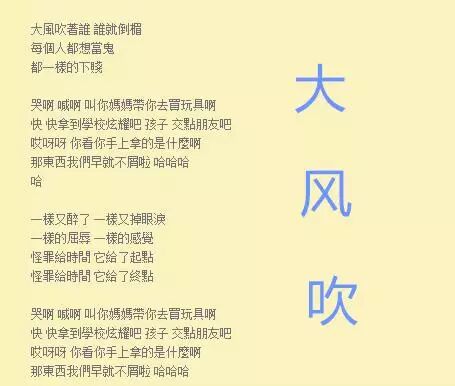 《大风吹》的歌词很特别,曲子的风格也不是大众都能喜欢的,乐队的名气在华人乐坛也不够响亮,这首歌能得最佳年度歌曲奖出乎意料。喜欢这种歌的人比较年轻化,年纪大的人也大多不会了解“大风吹”这种游戏。