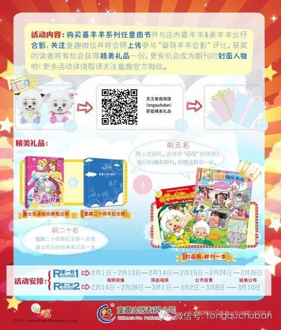 参赛资格:凡购买喜羊羊系列图书均可参加萌照评比活动