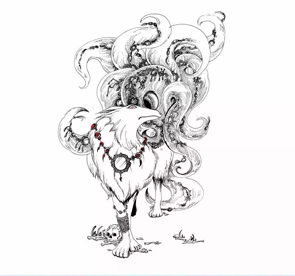 具体描述:在青丘山的深处住着传说中的九尾狐。这九尾狐样子像狐狸,长着九条尾巴,叫声像婴儿的啼哭。但是这种兽会吃人,人如果吃了它可以摒除各种妖气,如同后世佩戴了神符的道士一般。