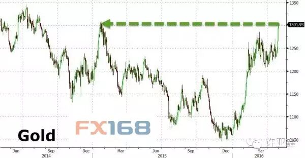受到美元疲软影响,黄金价格自2015年1月份以来首次突破1,300美元/盎司,投资者猜测从美国到欧洲的央行将维持利率在低水平,从而刺激了对黄金的需求。