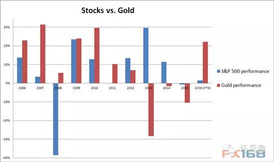 历史数据会给我们线索,黄金年内迄今为止已经大涨22%,而标普500指数交投于平盘附近。令人啧啧称奇是,在股市上涨之际,黄金仍表现优异。