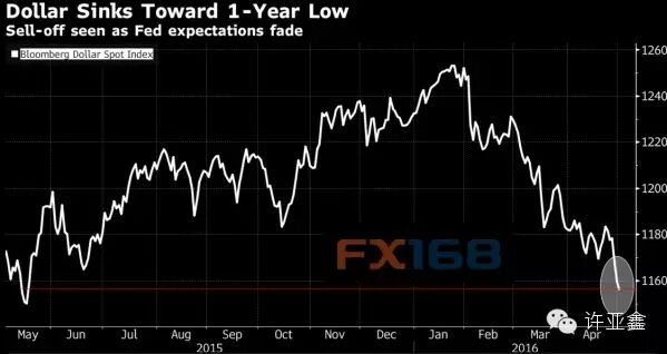 与此同时,跟踪美元兑10种主要对手货币的彭博美元即期汇率指数下跌0.3%,跌至去年5月15日以来最低点。因为日本央行按兵不动,而美联储主席耶伦则重申不急于通过加息给美国经济降温,该指数上周大跌2%。