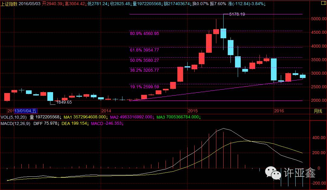 中国股市上周五缩量反弹上涨,在周线连续四连阴的背景之下,许老师曾在上周一撰文指出《周线四连阴,还能更糟糕吗?》,结论便是,持续的地量所反映的真实情况或许是见底,而并非市面上所看到的一片悲观。在这个市场里面做交易,有些时候、就要敢于逆向思维,既然敢于在4500上方减仓,就要敢于在2850下方加仓,因为基本逻辑是一样的。