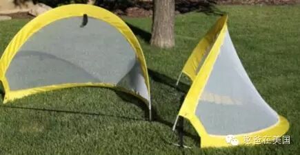 找一块平滑的草地(学校的球场最好),用石灰粉画出一个几十平米的长方形场地(场地大小根据儿童年龄来定),并画上中线和禁区线,再架上两个可折叠的简易球门(如果没有正规球门的话),简易球门参见下面这张图。