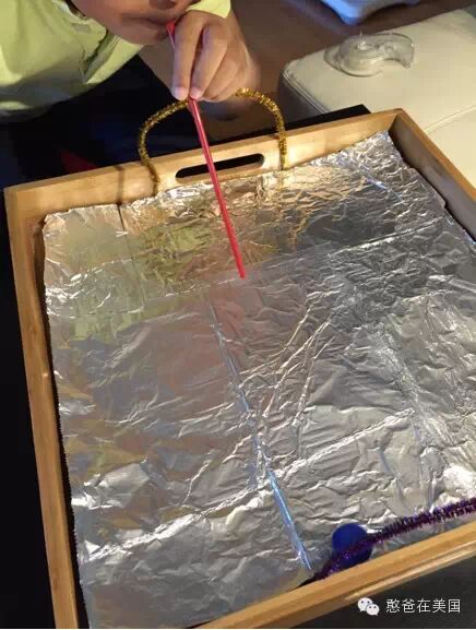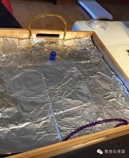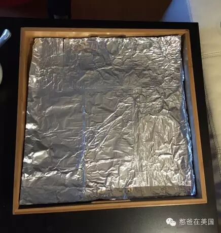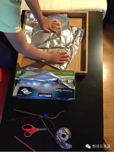 1. 用锡箔纸在托盘里铺开,并用胶带纸固定住。