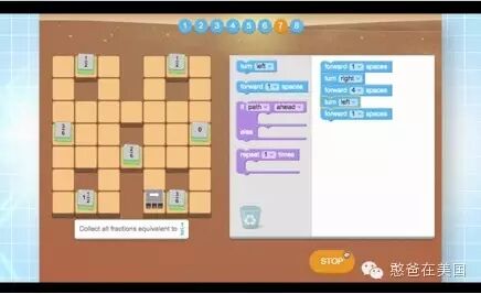 这个是用图形化的方式教儿童编程,右边是一些程序代码,这些程序不需要儿童手写,只需要拖动即可,而左边就可以看到程序实现的效果。