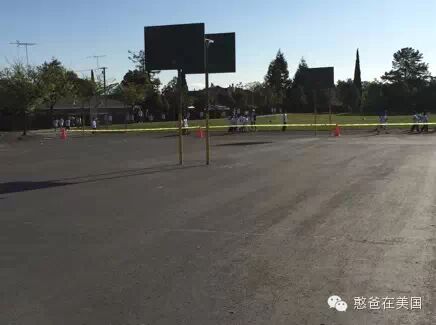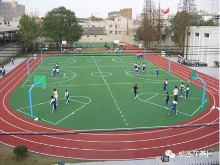 看完了操场,咱们再看篮球场。篮球场应该是塑胶场地,多彩的篮球框架,正如下图这所国内学校的一样,不是吗?