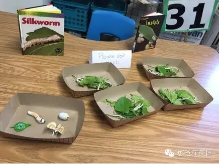 进门口右手边是一张小桌子,桌上放着他们班级共同饲养的蚕宝宝,孩子们每天一上学,都会关心一下蚕宝宝吃饭了吗、长大了吗,这可是他们共同的宝贝呢!