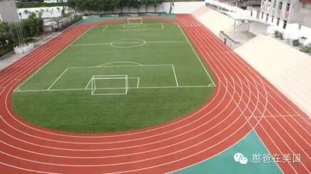 我们印象中的操场是下图这样的,对吗?有塑胶跑道,有人工草坪,很多国内的小学都拥有这样一个操场。