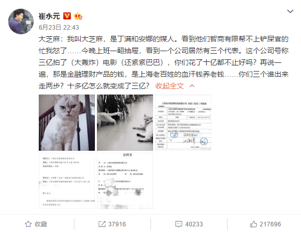 事件还是要从5月24日开始,崔永元微博发出一段言语“一个真敢发,一个真敢领”,配图是范冰冰获得国家精神造就者奖的新闻报道,之后揭露“大小合同”,偷税漏税等等事件,“有图有证据”迎来一股真实感,但却又不知道该怎样去占位,众所周知娱乐圈的混乱,也只能说是将信将疑吧。一个崔永元,叫不醒整个娱乐圈,当真如此?现在矛头指向《大轰炸》,起初,其实我是犹豫的,但现在我有不同的看法,切莫因误解而毁了本分的电影人,毁了4年来2000多人辛辛苦苦得来的成劳动果实。
