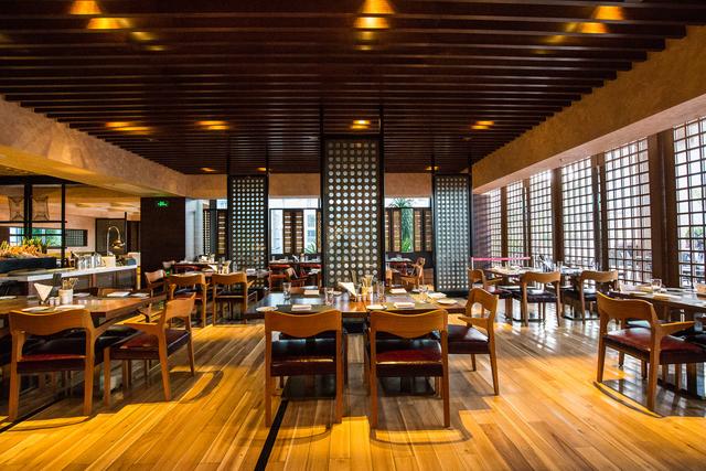 贡厨(Goji Kitchen)餐厅是一家全天候的餐厅,设计时尚雅致,菜式品种丰富,提供可口的海南菜肴,把街边的小炒也搬进了酒店餐厅来,除此还有海南特色的小吃清补凉。贡厨露台酒吧可以看到大东海的海景,晚上这里变成露天烧烤酒廊,听海、品尝美食,三杯两盏下肚,美妙至极。