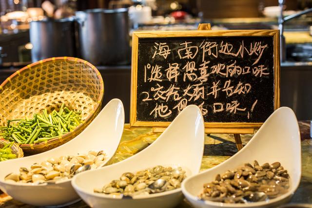 晚餐在贡厨吃自助餐,坐的地方有点对风口,我环顾四周试着找没有风口的地方,值班经理细心的发现了走过来说是有风吹到吗?可以来这个位置坐,他指指隔壁的位置。闲聊中,我说吃母乳的宝宝最近拉臭臭不是很好,能否做个蒸南瓜然后帮忙煮个白萝卜水?经理听完后说没有问题,马上交代后厨去做。蒸南瓜上来后问我是否满意?明天早餐还需要帮忙安排吗?一瞬间真的有感动到我,旨在给客户留下难忘的住宿的体验,山海天万豪每个人工作人员都在用心服务。
