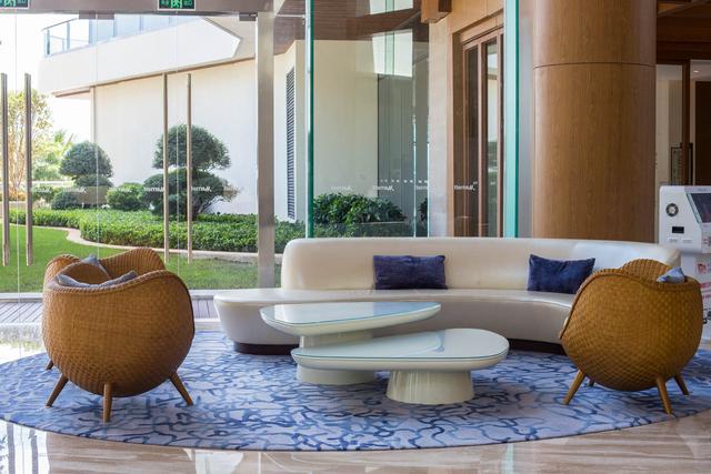 走进大堂,目光被午后阳光穿透木质天窗而过的光晕而吸引,整个大堂结合了海的元素带着浓浓的度假风,最为喜欢的是下沉式的沙发区,周边被绿植环绕,流水相伴,度假的客人葛优躺的窝在沙发里,孩子在一旁蹦蹦跳跳,这和谐温馨的画面最好的诠释了度假的意义。