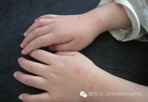 4、如果已经生酮的孩子得了手足口病,可以正常治疗,尽量使用片剂、胶囊剂、颗粒剂等含糖少的药物,避免使用糖浆和葡萄糖。