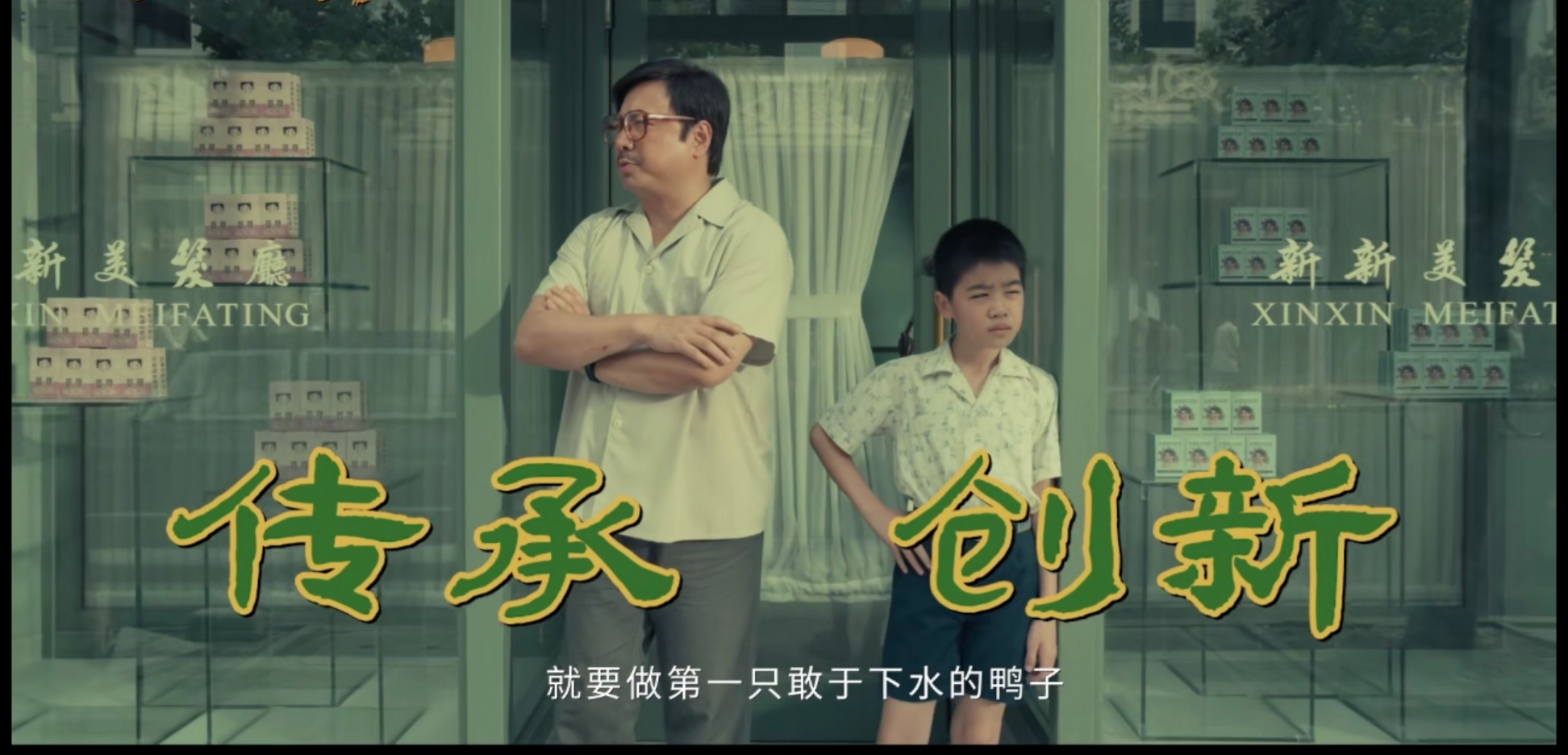 到了反映改革开放的徐峥导演《鸭先知》,影片基调开始由热血、催泪转向温馨、惬意。那个曾经在《我和我和祖国》里为了女同学掉眼泪的小男孩韩昊霖,这一次和徐峥演绎了一出十分有爱的父子深情。“春江水暖鸭先知”,改革开放如同一阵春风,吹拂着整个祖国的大地四方;最后的收梢、同时也是喜剧意味最浓的沈腾导演《少年行》,集结了观众最为喜闻乐见的马丽、艾伦、张小斐、辣目洋子等强劲喜剧阵容,以脑洞大开的想象力,表达对于新时代盛世的美好愿景与希冀。
