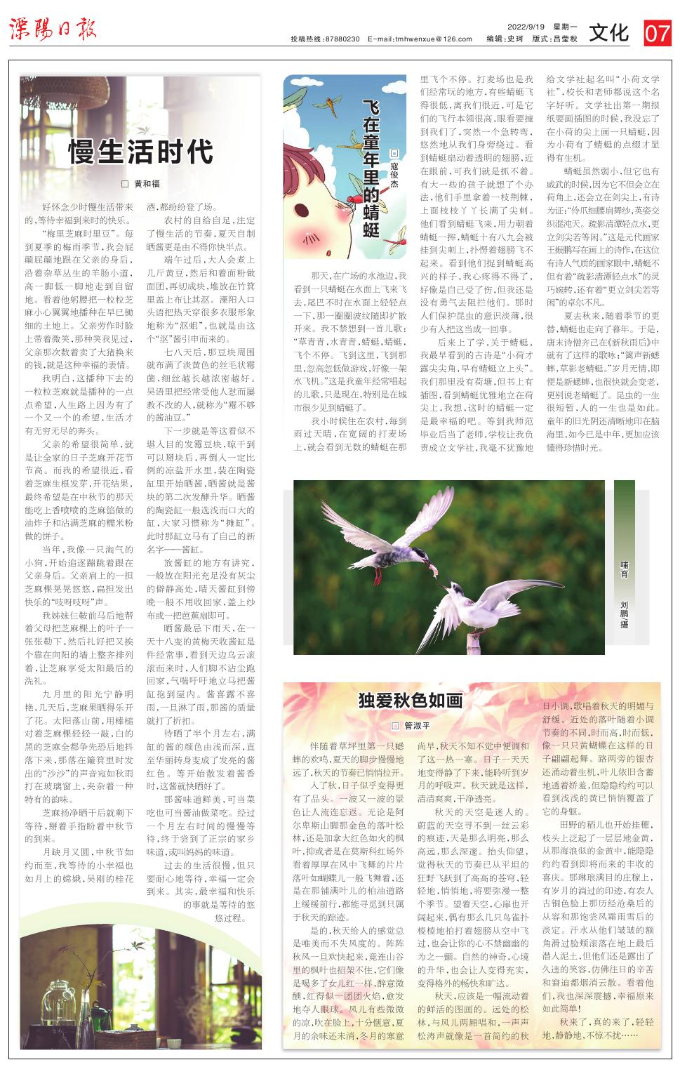 121、溧阳日报9月19日飞在童年里的蜻蜓