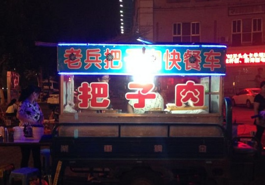 老板是退伍的炊事班战士。地地道道的把子肉,想吃到老兵的把子肉真是要看运气,经常不出摊,经常跑空。即使逮到了,也要排队等候,一般是5-15分钟的等候时间,光看着排队的阵势,就知道他家的肉多好吃了,但肥而不腻,瘦而不柴,味道浓郁,一吃就是老汤泡制的,好吃!