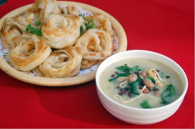 油条是咱济南人早餐的必备,长条形中空的油炸食品,口感松脆有韧劲,再点一碗五香甜沫或者豆腐脑,人生从此完美!
