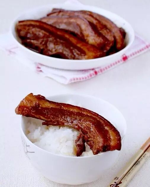 济南把子肉是全国闻名,有着肥而不腻的上佳口感。虽然是浓油酱赤熬制,但却不咸,刚好下饭。趁热连肉带汁浇在白米饭上,亦十分甘美。