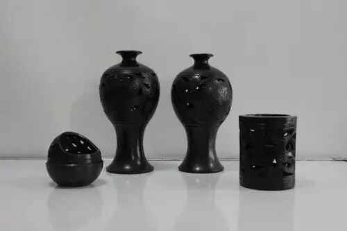 济南黑陶全部采用手工制作,造型秀雅、质地坚固。主要有罐、壶、壁饰、壁画以及人物、动物造型等。其造型均不失古朴典雅风采;陶体色泽黑中透亮,有乌金墨玉之感;装饰纹样,具有浓郁的地方特色。