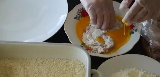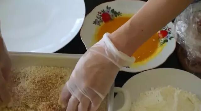 准备好面粉、鸡蛋(打散成蛋液)和日式面包糠,放置在碗中或盘中,再将每块鸡肉依次均匀裹上面粉、蛋液和日式面包糠。