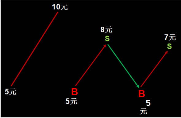 3、上涨赚钞票,下跌赚股票;