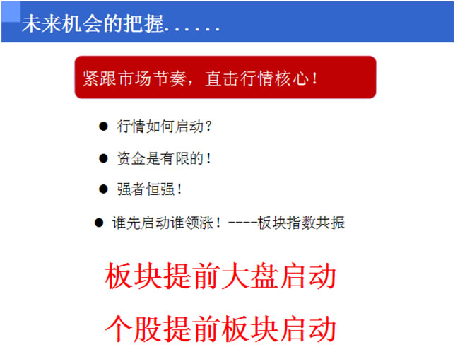 3、板块提前大盘启动,个股提前板块启动;