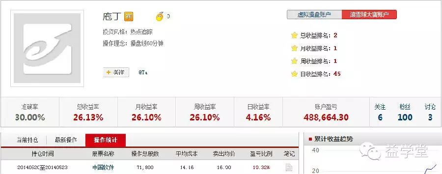 战绩:操盘手滚雪球大赛总成绩第二名,月成绩第一名