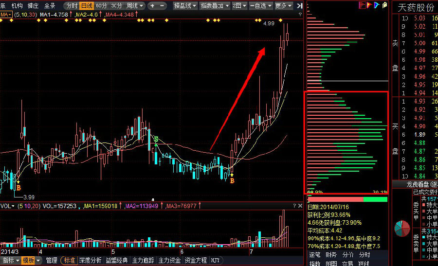 6月27日高级课程班学员应用黄金眼触发及资金监控选到天药股份(600488),并于7月4日买入,获利颇丰,与7月16日发邮件至俞湧老师邮箱报喜。下面我们就来看一下该股选择及买入的理由,为何能够做到弱势中安稳获利呢?