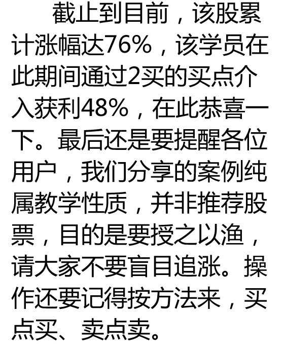 最后还是要提醒各位用户,我们分享的案例纯属教学性质,并非推荐股票,目的是要授之以渔,请大家不要盲目追涨。操作还要记得按方法来,买点买、卖点卖。